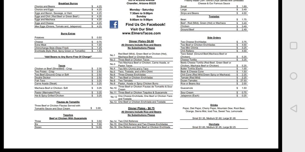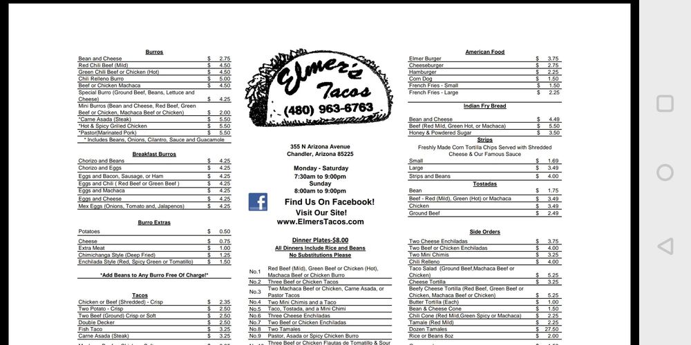 Welcome to Elmer's Tacos, a delightful taco haven located at 355 N Arizona Ave in Chandler, AZ. This Latinx and women-owned eatery specializes in breakfast and brunch tacos that have become beloved by locals. The inviting atmosphere greets you as you step inside, ensuring a homey feel that harkens back to its decades-long tradition.